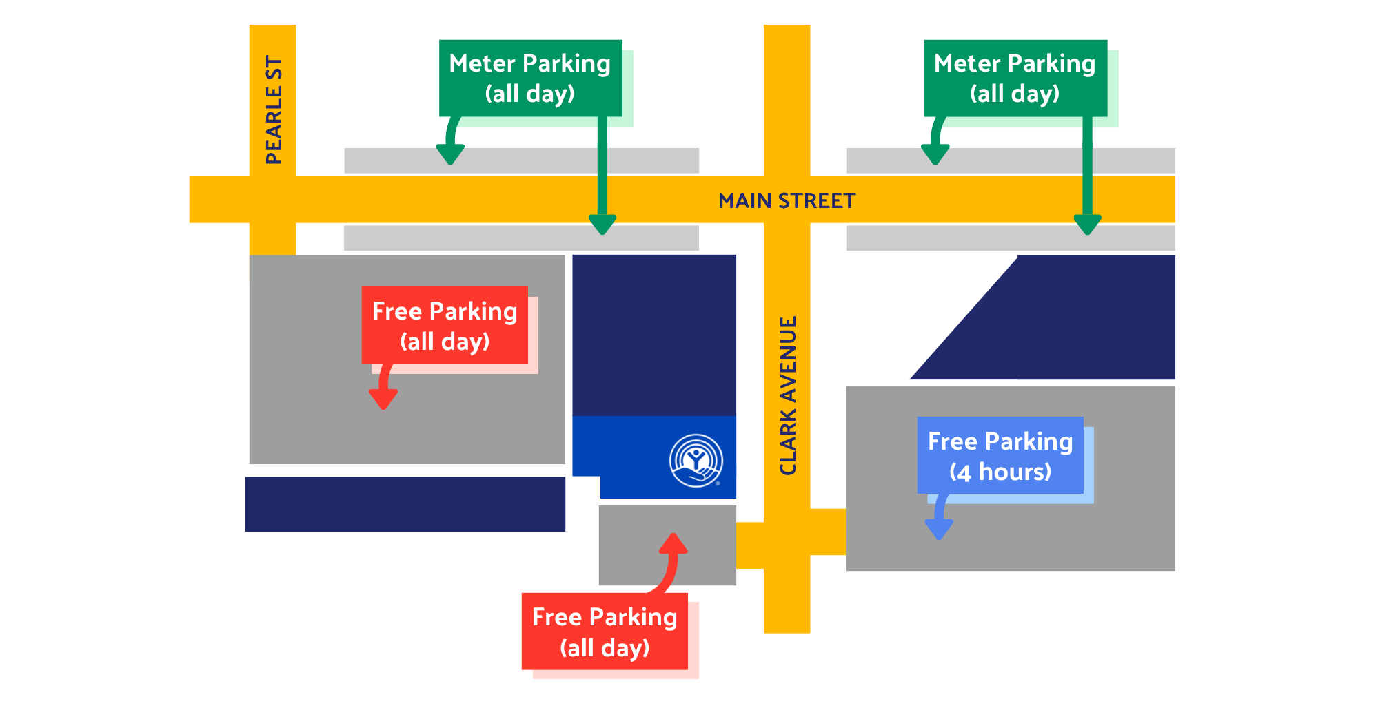 Finding us is easy! We are located at 315 Clark Ave, with plenty of parking options nearby. Visitors are welcome to use the free lots immediately south and west of our building. Additional 4-hour parking is available in the lots to the east (please avoid spots marked "Reserved"), or you can find metered parking along Main Street for $1 per hour via coins or the ParkMobile App.